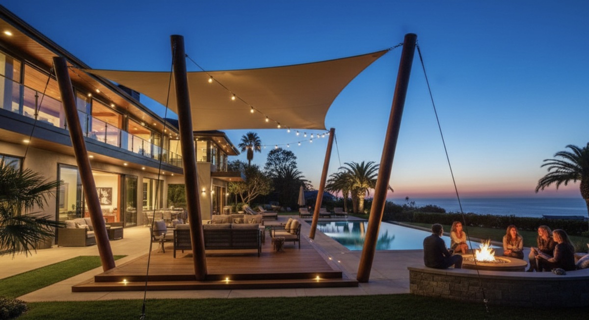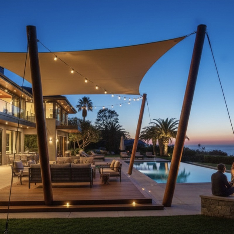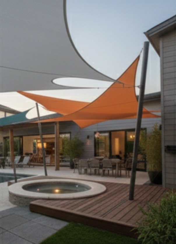 Residential: Elegant shade for your backyard oasis, over patios, decks, and poolside retreats.